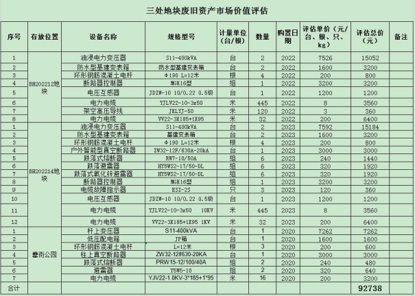 三处地块废旧配电设施资产转让(三次) |